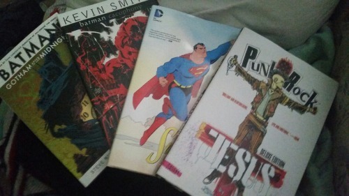 SO GAIL SIMONE IS ONE OF OUR REGULARS AND HER HUSBAND ASKED ME “OH YEAH SO WHAT COMPANY IS YOUR FAV” AND I TOLD HIM “WELL HONESTLY I LOVE VERTIGO AND THUS OF COURSE DC” AND THEN AFTER THEY GOT OUT OF THEIR MOVIE THEY BROUGHT ME THESE SO I WAS ALL “OMG YOU DONT HAVE TO DO THAT” AND HE WAS LIKE “NO IT’S OKAY, MY WIFE HAS WORKED FOR DC FOR OVER A DECADE, WE GET THEM COMPED”