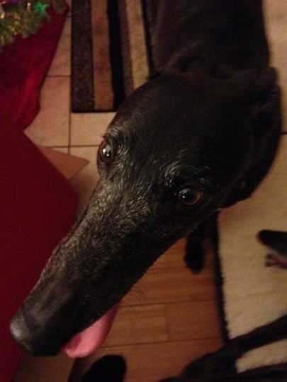 They are rescued racers, both of them. The younger one, the black one, is only a few months off the track, so they have spent almost their entire lives either crated or racing.