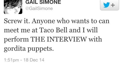 One of the many reasons why if you’re not following gailsimone on Twitter then you should be.
