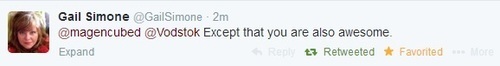 I HAVE PHOTOGRAPHIC EVIDENCE THAT GAIL SIMONE THINKS I AM AWESOME.
