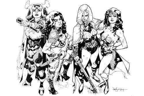 Big Barda, Red Sonja, Valkyrie, and Wonder Woman by...