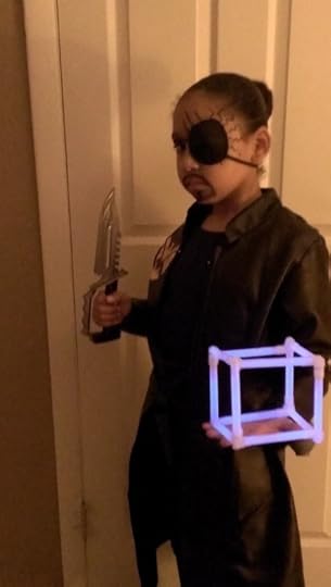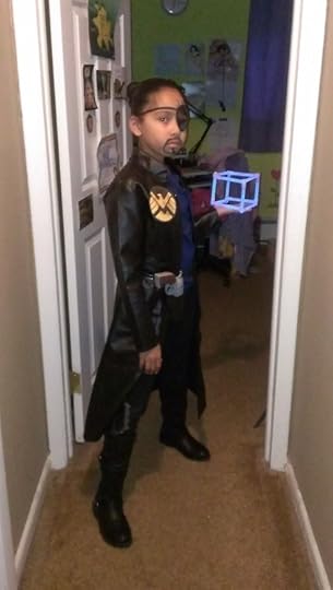 My browser was acting weird, but this is my submission of my daughter for the girlslovesuperheroes contest ending today. She dressed up as Nick Fury last Halloween, and called herself Nick Furious. My husband, stanislausinrepose, had the awesome idea of gluing glowsticks together to make a tesseract… I wish I’d been able to find a briefcase, but I think it worked out pretty well. Two years ago she dressed up as Batgirl, but unfortunately I couldn’t find any of those pictures. =(