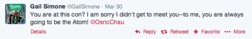 Osric posted that he had read the All-New Atom and fallen in love with the character, before he knew me or we had ever spoken. He said there was finally an Asian superhero he could relate to. This was on Twitter, a while back.