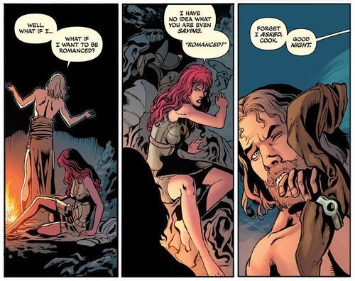 Poor Sonja. Isn’t she going to a brothel in the next issue or something? I imagine her little problem might go away there — or get much worse?