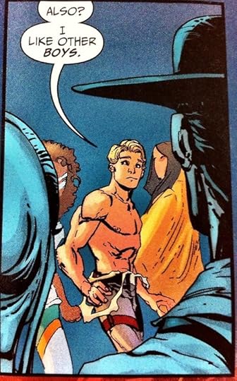 “No. These people aren’t my family. My family? My family is… a little bit of a miracle.” -Burden, The Movement #11 As Virtue and Rainmaker get their long-delayed first date, Burden’s brother Jacob comes to town to kidnap him and take him home to do “penance.” So, happily, The Movement continues to show us explicitly queer kids matter-of-factly doing things (Dating! Kissing! Eating ice cream! Fighting injustice! Things!), which, in itself, is pretty good representation. But the penultimate issue of The Movement also happens to be a sweet little Coming Out Story, wrapped up in a crunchy shell of monsters, torture, and childhood trauma. I would have liked more pages…