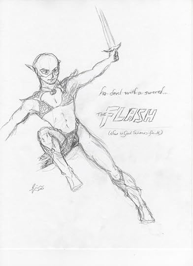 From the mountains of dark Hyrkania outside of Keystone City, Kansas (wat?) comes the super-sonic Speedster With A Sword, the very-aptly-named.. The FLASH!