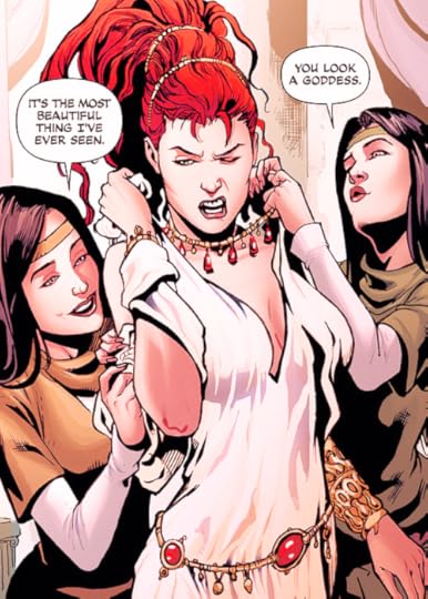 This scene is played a little bit for laughs, but it also makes a point about what society wants from warrior women once the battle is over.