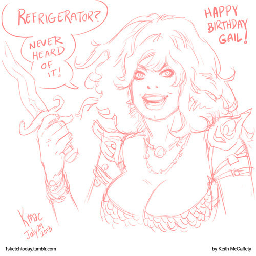 Red Sonja says HAPPY BIRTHDAY to @GailSimone - by Keith