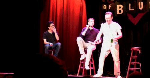 Paul Rust / Scott Aukerman / Hot Dog on stage at House of Blues during ComicCon