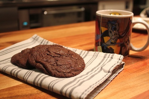 From its debut, I’ve been quite enamoured with Gail Simone’s comic series “The Movement" and being able to meet Gail herself and get my issue #1 signed in Wellington this year was simply mindblowing (she said she liked my bag, haha!). While brainstorming for new baking experiments, I decided to base a series of cookies on the lead characters of “The Movement", starting with my current favourite, Katharsis. Katharsis is a badass ex-cop who seems violence-prone and, just like these chilli chocolate cookies, packs a mean punch. These cookies, adapted from GuiltyKitchen are full of sweetness, saltiness, and raw heat.