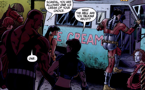 I will forever claim that Bane’s relationship with Scandal in Secret Six was the basis for Bane’s relationship with Talia in TDKR. He just thought she needed a father figure.