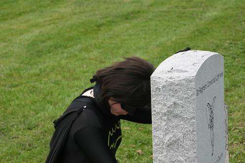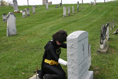 As good as that Cassandra Cain cosplay was, I can't help being rubbed the wrong way by the shot. That gravestone looks contemporary, so there's the chance that whomever is buried there still has relatives or friends that come by to visit. After going to a