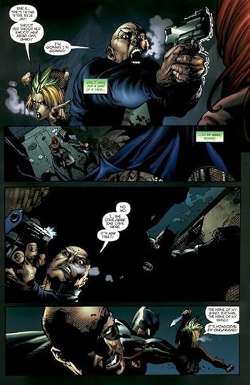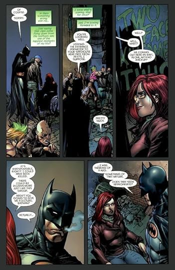 It was meant to be purple originally on the inside of the cape, and it looked great in most shots, but editorial felt, I gather, that it muddied her profile a little in the scenes where the images are smaller. I think they liked the idea of some characters “owning” a color, Batwoman and Nightwing with the red and black, Batgirl with the black and yellow, et cetera. So they asked for it to be changed to solid yellow on the interior.