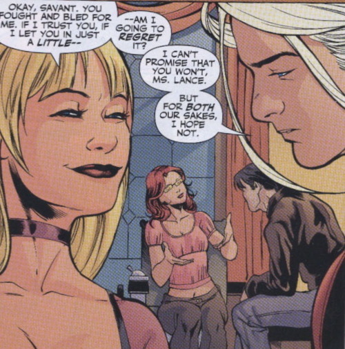 How is being considered an ally by the Black freaking Canary, especially after having gotten off to a really hostile start, not considered exquisitely bamftastic? >3 And Savant’s dialogue here is just rife with character development, to boot. He’s always cloaked himself in bravado and arrogance to hide his internalized inadequacies, but now that working with the Birds is stripping that cockiness away, it’s also revealing a man who’s well-aware of his abilities but still fighting with deeply-ingrained feelings of inadequacy that almost comes off as - dare I say it - civil! There’s your burger-flippin’ character growth, right there.