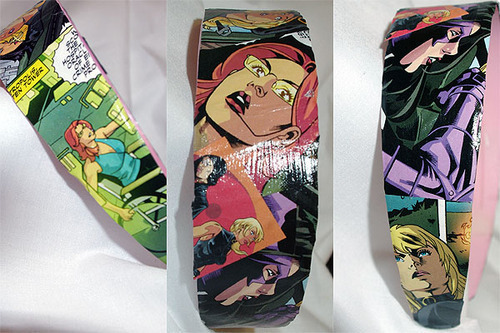 I made a bunch of comic book headbands yesterday. Learned things (like need to leave more at the edge to leave a proper amount to wrap) but for prototypes/first attempts I’m really happy!