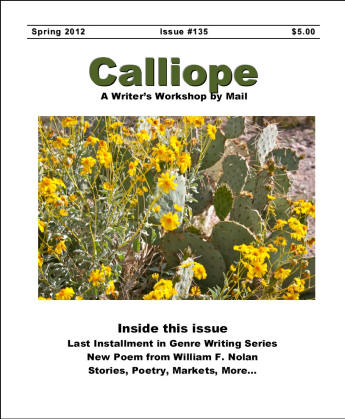 I like to bring this competition to folks' attention because it's open to novice and experienced writers alike, the judging truly is fair and impartial, and Calliope is a not-for-profit organization designed to aid and encourage interest in reading and writing.