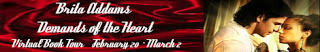 I'd love to hear from you. You can find me at any of these places:Email address: britaaddams@gmail.comWebsite Blog Twitter: @britaaddamsFacebook Goodreads Page 20% off To celebrate the release of Demand's of the Heart, Noble Romance Publishing is offering my entire backlist at 20% off. This is for sales on the Noble Romance Publishing site only and only my titles.There's no limit. Buy one book, or all seven, you'll get 20% off your purchase. The eligible titles are: Serenity's Dream; Lord Decadent's Obsession; Chocolate, Tea, and the Duchess; The Rogue's Salvation; A Minute After Midnight; An Evening at the Starlight, and the book I wrote under the name Tina Ordone, Her Timeless Obsession.The price you'll see is the reduced price.The sale will run from midnight, Pacific time, February 20 to 11:59 pm Pacific time, March 2.This is a backlist sale, so it doesn't include Demands of the Heart.