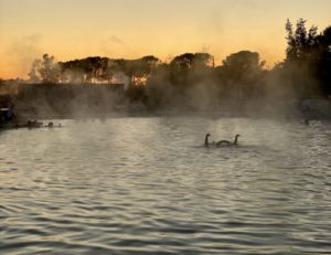 Between soaks we took a few long walks. One day we happened upon the famous outdoor waterfall, located just down the road from our hotel. Here the thermal water runs through a canal and then tumbles down a series of natural pools. It’s a magical place, and on New Year’s Day was full of families soaking in the new year. The waterfall is located in the middle of a field and is completely free to the public. But since it is located quite a bit away from the source, it isn’t as hot as the pool at the hotel. Also? You have to be pretty agile to get in and out. Just saying.