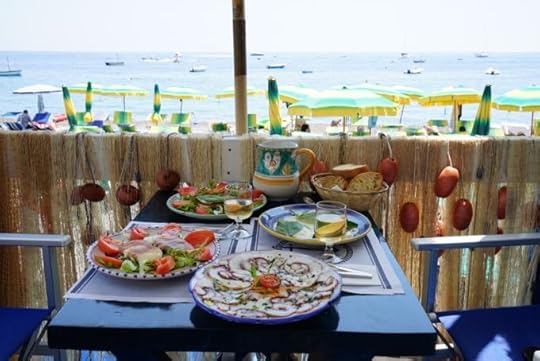 For more about traveling around Italy, following your appetite to out of the way places , buy my book Eating My Way Through Italy. And if you’d like to recreate your own Italian meal at home, my book The Italian Table: Creating Festive Meals for Family and Friends, has all the recipes you’ll need (including an entire chapter on eating on the beach in Italy)