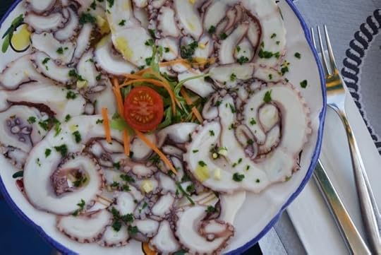 Beach: Masseria Prisuti is only a 5 minute drive from the beach, which is why we were there. So once we checked in, we headed directly to the sea. Since it was Friday afternoon, it was relatively empty. We asked the folks at Masseria Prisuti for advice. Beach clubs are a particularly Italian thing, and after talking with the owners Sophie decided that Lido degli Angeli would work for us. While Sophie is all for climbing over dunes to rocky deserted beaches, I prefer a lounger, umbrella and all the other things that come with Italian beach club life. (for more on stabilimenti see my books The Italian Table , Eating My Way Through Italy and Eating Rome)