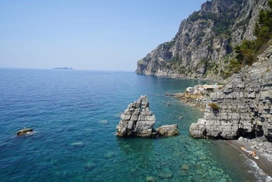 After what seemed like 200 steps we made it to Cala Feola, and – since Gillian knows all about these things – we had made it early enough to get a beach chair in the first row of the stabilimento near the water. And their we parked ourselves for the entire day. Taking breaks to swim, or get cool drinks from the bar magically set up behind us.