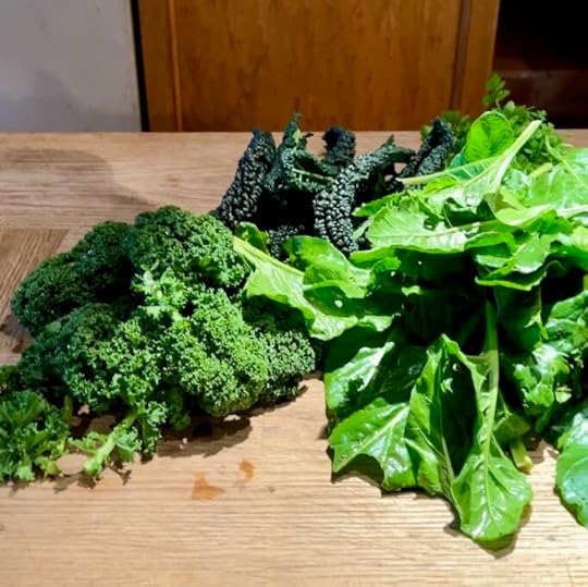 Luckily the recent warmish weather here in Umbria has meant our vegetable garden is still full of goodness: kale, swiss chard, cabbage and all sorts of other hardy veggies. The other day I decided a green soup was in order. I’ve made versions of this soup in the past, but this one was different enough to write down the recipe. We’ve been eating it every day this week and I’m sad that it’s finished.