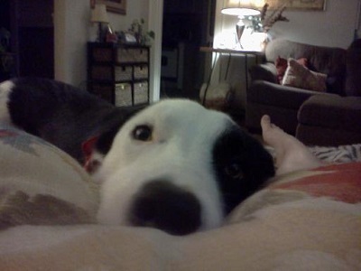 So, Thirddaughter is a senior this year, and as such, gets some privileges. One of them is occasionally getting to leave school for lunch. Today was one such day. But she hadn't taken any money with her, so she had to stop by the house on the way to the sushi place. (Because apparently, sushi = what kids eat for lunch these days.) ServiceDog was perfectly content up until then to lay on his little bed and occasionally harrass me for pets or treats and give me the "Is it time to pick...