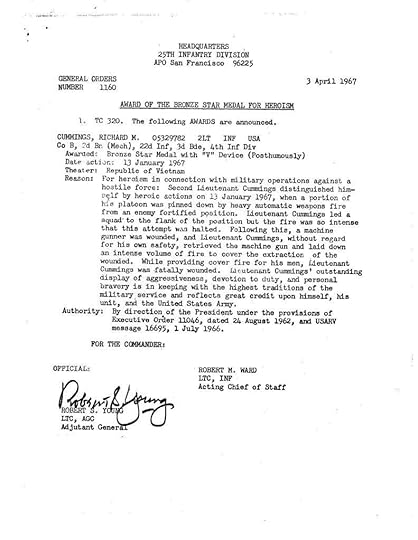 I was very small when my uncle was killed, but that fact, and the lumbering of time, have not dulled his presence in my life, or my respect and gratitude to him and too many like him. He and my family, who have kept him ‘with us’ throughout all these years, are why I know what honor is, and what gives me a constant goal towards achieving a personal honor of my own. His life and the story of his death taught me that, regardless of what one might think about the motives of one’s country, the nobility of spirit of those on the ground—some by choice, and some by circumstance—should never be dismissed as merely a number that sits beside the letters KIA.