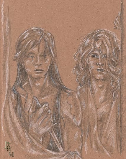 The strangest reunion she’d ever seen, though admittedly, she couldn’t recall ever having seen one before. Still, though, she’d sort of expected hugs and shouts of relief; what she’d actually witnessed were intense looks between Fen and his twin, some sort of silent plea that the brother had accepted with clear reservations, and distrust and hostile looks at all of them, but particularly at Malick. The little one, Caidi, seemed to be rather a limpet where Fen was concerned, to which Fen submitted with some softening of his usual stony expression, and stiff embraces when she demanded them, but the other one, that Morin, was a bit of a puzzle. Not hatred in his eyes when he looked at Fen, but… Yori couldn’t tell, really. He was too obviously afraid of both his elder brothers, and Shig engendered harsh distrust from the second he laid eyes on her—the hair was apparently too much for him—which turned to outright anxiety when she spoke. Though, Yori mused, the fact that Shig’s first words had been, “Damn, but you’re an angry little rabbit, aren’t you? Stop thinking so loud, you’re giving me a headache,” probably hadn’t helped. Not the best way to introduce herself to a boy who’d been taught that magic, or even one’s proximity to it, meant painful death. Pretty amusing, though, at least to Yori, but then, lots of inappropriate things amused her.