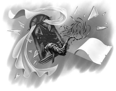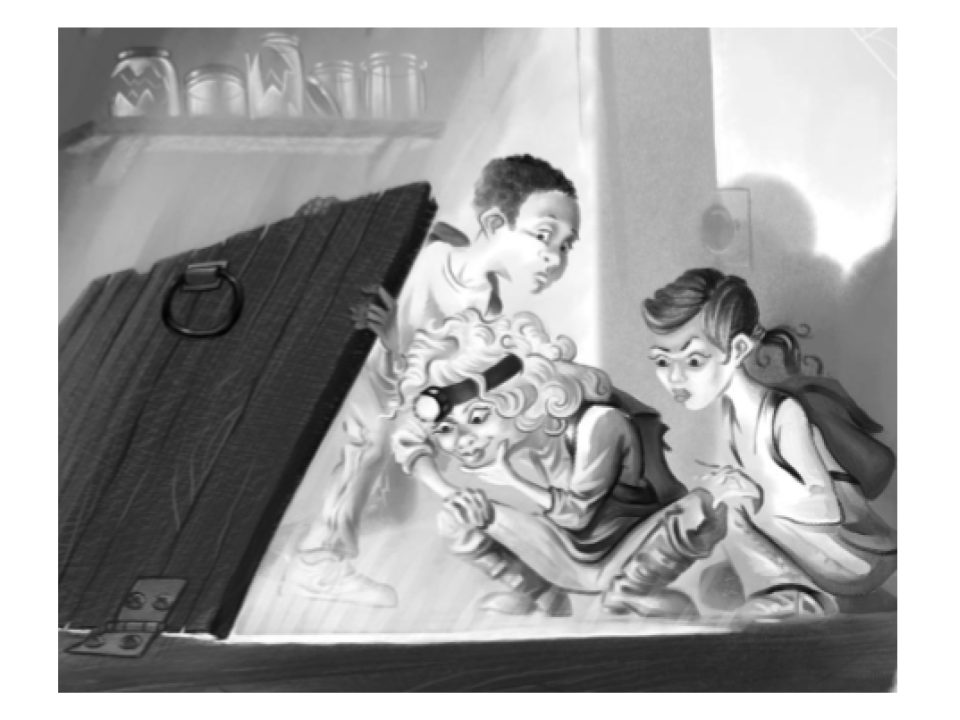 “Yeah, I’m alright,” Fairday answered in a shaky voice. She peeked out from the blankets as a burst of light split the dark. For an instant, glass shards twinkled like stars across the tattered lion-and-unicorn carpet; the heavy drapes flapped, twisting in the wind. On the next lightning strike, Fairday saw a paper blow in through the broken window. But the second she glimpsed it, thunder boomed, the house shook, and everything blacked out.