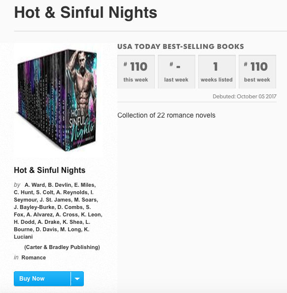 Here's what's on my mind today:Hot & Sinful Nights My steamy romance boxed set releases Tuesday! That's tomorrow! Ahh! Okay, time to be completely honest. I'm really hoping this set hits the USA Today Bestseller List, so if you like romance, please consider grabbing this for only $.99. The price will go up soon, so don't wait to grab 22 romances at this insanely low price!