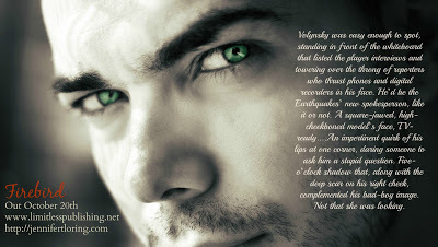 FIREBIRD by Jennifer LoringStephanie Hartwell is a journalist chasing the story of her career...When superstar hockey player and notorious bad boy Aleksandr Volynsky is traded to the Seattle Earthquakes in a blockbuster deal, Stephanie demands the opportunity to prove herself by scoring an exclusive interview with a man with no love for the media...the same man she once thought, as a naive teenager, she'd someday marry.An Olympian and Stanley Cup Champion, Aleksandr has achieved every goal he's ever set...Now expected to carry a failing team on his shoulders, Aleksandr's troubles deepen when he encounters Stephanie after a season-opening loss. His lifestyle of drinking and random hookups has been a futile attempt to forget the beautiful tomboy who stole his heart nine years ago. And worse, fame and fortune have made it impossible for him to trust anyone--especially Stephanie, who is engaged to another man.Romance rekindles, but tragedy reveals Aleksandr's dark side...Being with Aleksandr in the first place jeopardizes Stephanie's journalistic integrity and threatens her career, and when he spirals out of control, it reawakens fears from her own history, making her unable to commit to a future with him.When Aleksandr discovers the truth behind his self-destructive behavior, will his newfound self-awareness be enough to convince Stephanie to give him one last chance...Or will his revelation drive her away for good?