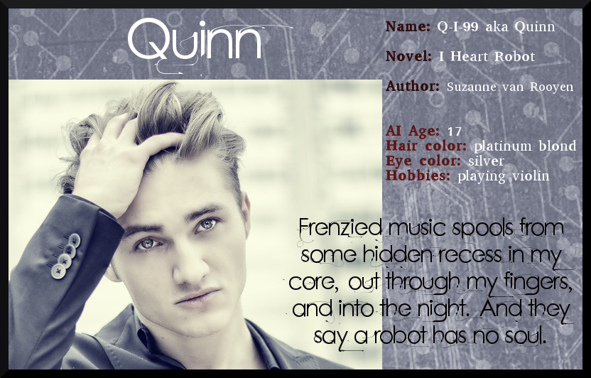 Q-I-99 aka 'Quinn' lives in a scrap metal sanctuary with other rogue droids. While some use violence to make their voices heard, demanding equal rights for AI enhanced robots, Quinn just wants a moment on stage with his violin to show the humans that androids like him have more to offer than their processing power.