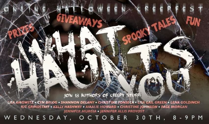 1. What Haunts You I'm taking part in the What Haunts You Online Halloween Creepfest on Wednesday, October 30 from 8-9pm. It's a Facebook event with 13 authors who all have one thing in common: loving all things creepy. And of course we'll be giving away some goodies. Join us here.