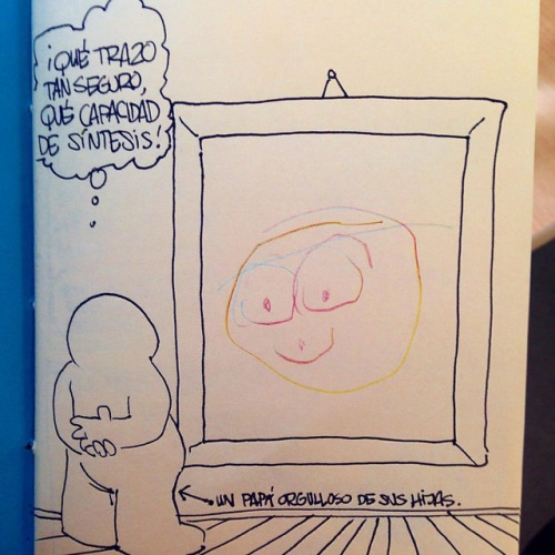 Le pedí a mi hija María (8 años) que me dibujara./ I asked my 8 yo daughter María to draw me. “Nice strokes! Impressive abstraction!”