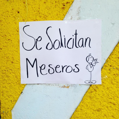 No pediría la chamba pero amé el muñequito. / “Waiters Wanted” I’d never apply for the job but loved the toon.