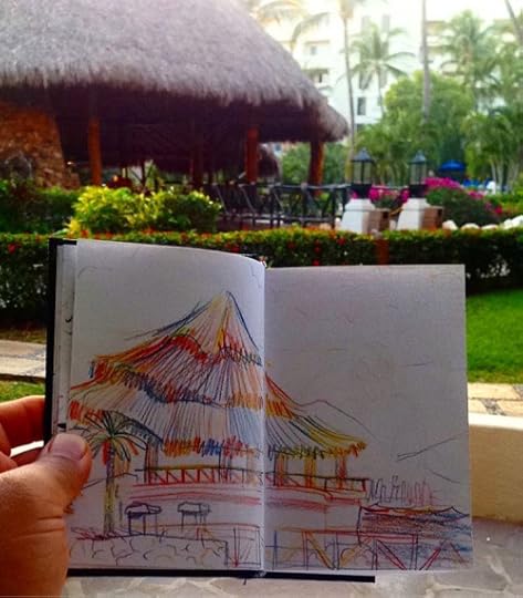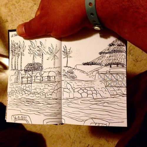 Debo ser el único teto que se pone a dibujar en este resort/ I must be the only geek who’s doodling in the whole resort.