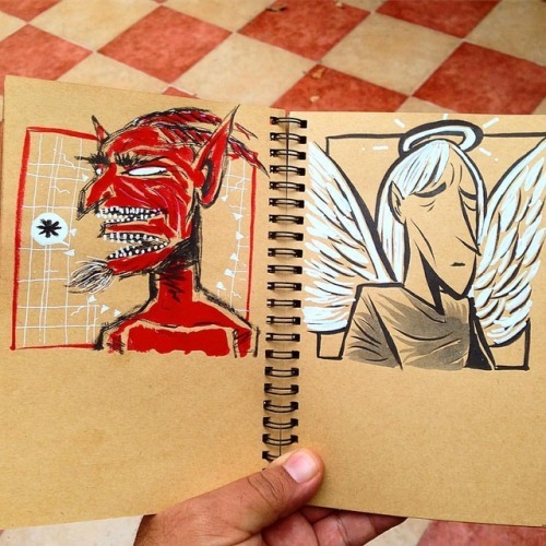 #pentelcolorbrush #pentelwaterbrush #molotowmarker #rollygel #whiteink #duality #yingyang #angelanddevil