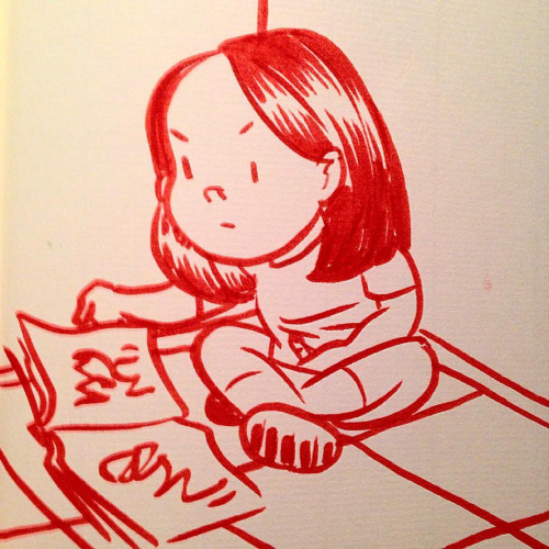 María dibuja. No le gusta que se transparenten las hojas. Igual que yo.