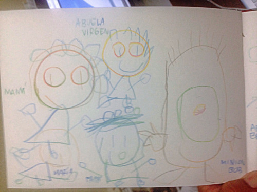 342/ El dibujo de hoy (doble) lo hizo mi hija María. Nótese al Minion Bob.