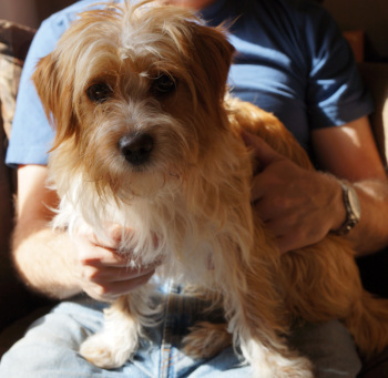About a month ago, Mike and I adopted an 18-month-old rescue dog we named Maddy who had been picked up by animal control in Yakima. Although the rescue organization thought she might be a Cairn terrier mix, we suspect she’s actually a Dutch Smoushound, a rare terrier breed that was brought back from extinction by a woman named Mrs. Barkman. (I’m not making that up.) Maddy had been adopted twice and returned to the rescue organization. The first adoptive family, an elderly couple, returned her in part because she didn’t “speak English.” The second, a doctor and his wife, decided after two weeks they didn’t have time for a dog after all.