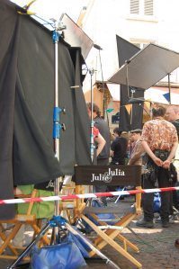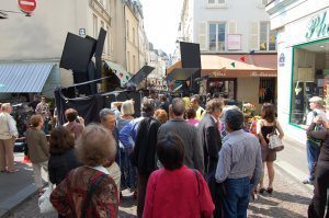 Oh, all right, it wasn’t that straight forward. Actually, yesterday a friend called from the Café Mouffetard where she was having a glass of wine to say that they were setting up for a movie. It turns out they were shooting Julie & Julia. In case you’re unfamiliar, it’s about Julie Powell taking on the task of cooking all of Julia Child’s recipes in Mastering the Art of French Cooking in one year. That’s 524 recipes in 365 days.
