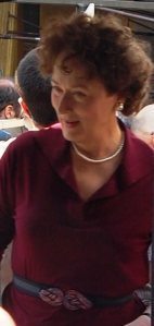 Then I walked around the camera area and bam, there was Nora Ephron. Resplendent in a cream outfit with a hat, big sunglasses and cream-ish pashmina. A small crowd had started milling but yet they were just sitting there, on the street. I was five or six feet away.