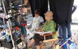 We took some photos and waited through a few takes, but there was not much to see around all the cameras. They put up big dark curtains around Nora. We ran errands, went to see a friend and came back as they were starting to break down the set. We watched fake pig heads going by on trolleys, extras stopping into bars for a drink and a slew of people swarm past us. By 7:30 p.m., it was all back to 2008.