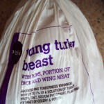 For a posher bird, I went to The Fresh Market. At $3.39 per pound, my 9.48 pound fresh breast cost about $32, twice as much. When pulled from its package, it had a drier feel. The flesh had more color and the skin had a yellowish hue. The package boasted the turkey had been treated “humanely in a stress-free environment,” experienced minimal processing and had never been administered antibiotics.