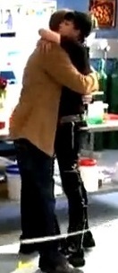 encourage her!Tim hops up to greet him, and Jimmy gives him a hug. Abby starts to get up, and Tim glares at her, so she stays sitting.
