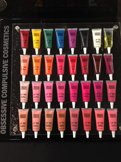 "Black the first time, like the tattoo. Then she found this stuff online, Obsessive Compulsive Cosmetics Lip Tars, they're basically lip paint, and you can mix them together to make lots of colors, and they come in a lot of colors, too. So she got like every color you can imagine: blue and green and purple and gold and silver and one weekend we tried them all out, and I covered her in lots of different colors, and she did me.""That was fun?"