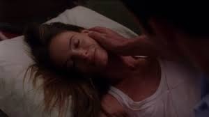 He puts his glass down, and moves to sit next to her on her pillow. His fingers brush her face, stroke through her hair, and trail down her naked shoulder and arm.