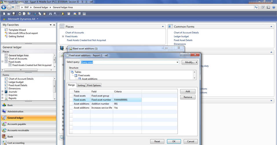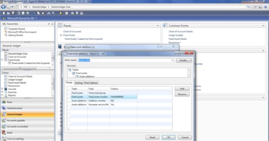 Developing Solutions is the main issue to meet customer needs in Financial Module in Microsoft Dynamics AX, we develop this business scenarios according to our background business through Financial Module concern the Fixed Assets Addition business processes within Microsoft Dynamics AX 2009 in a more simple steps.