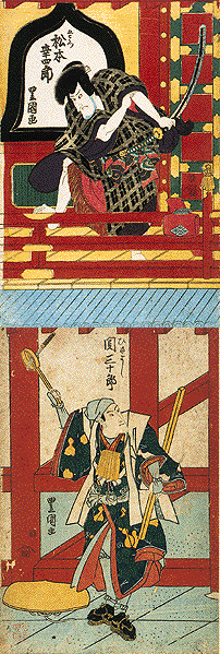 Here, in any case, is a scene from The Ninja and the Diplomat. There are not many such scenes but if no one feels a connection to this one, then it is back to the drawing boards for me. Prayer and fasting might also be in order. Wikimedia Commons is the source for both the graphs for ninja and for the Scene from the March 1826 Edo Nakamura-za production of Sanmon Gosan-no-Kiri, with Kōshirō Matsumoto V as Ishikawa Goemon (above) and Sanjūrō Seki II as Mashiba Hisakichi, by Toyokuni Utagawa II (1786–1865).